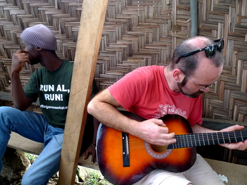 Making music in Liberia, West Africa. Nicholas and Wan at "Rehab" home-studio. August 2010.